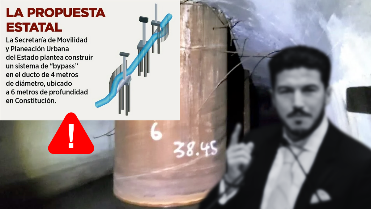 El documento presentado por la Secretaría de Movilidad y Planeación Urbana plantea instalar dos “bypasses” en el ducto principal, de 4 metros de diámetro, ubicado a seis metros de profundidad en la Avenida Constitución. El colector fue perforado por siete pilotes que sostienen las columnas del viaducto, construidas por la empresa Mota Engil.